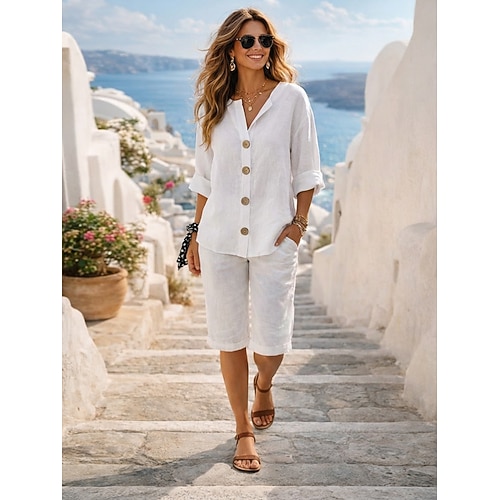 Per donna Set coordinati Camicie di cotone e lino Set Camicia Pantaloncini in cotone e lino Shorts Shorts da Spiaggia Pantaloncini casual Maglietta Mischia e abbina Vestito 2 pezzi Sport Streetwear