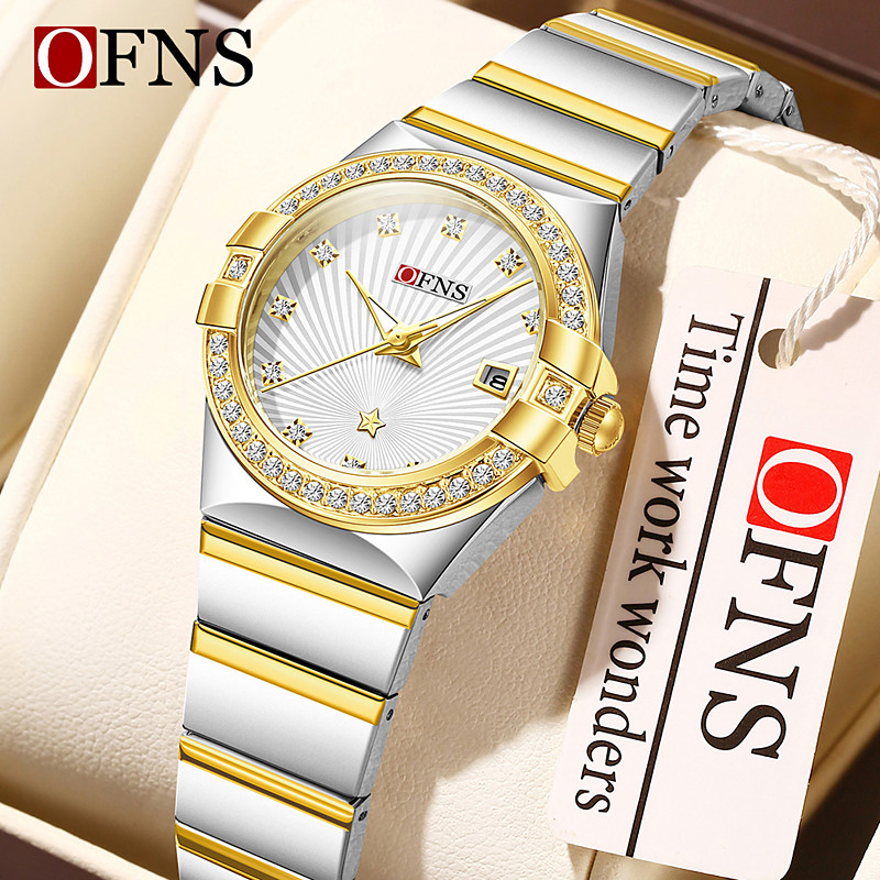 OFNS Brand Kid's Women Quartz Watch Fashion Rhinestone Casual Wristwatch Luminous Calendar Date Waterproof Stainless Steel Strap Watch