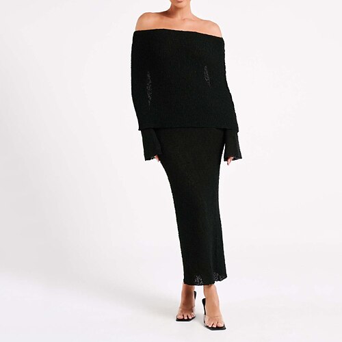 Per donna Abito Lungo Maxi Abito Vestito Estivo Moderno Spiaggia Vacanza Uscire Vestibilità regolare Semplice Manica Lunga Senza Spalle Nero Bianco Verde chiaro Albicocca Estate