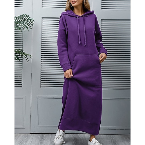 Per donna Abito Lungo Maxi Abito Abito con Cappuccio Abito a Tubino Moderno Quotidiano Vacanza Uscire Vestibilità comoda Semplice Manica Lunga Con Cappuccio Nero Vino Viola Arancione Autunno Inverno