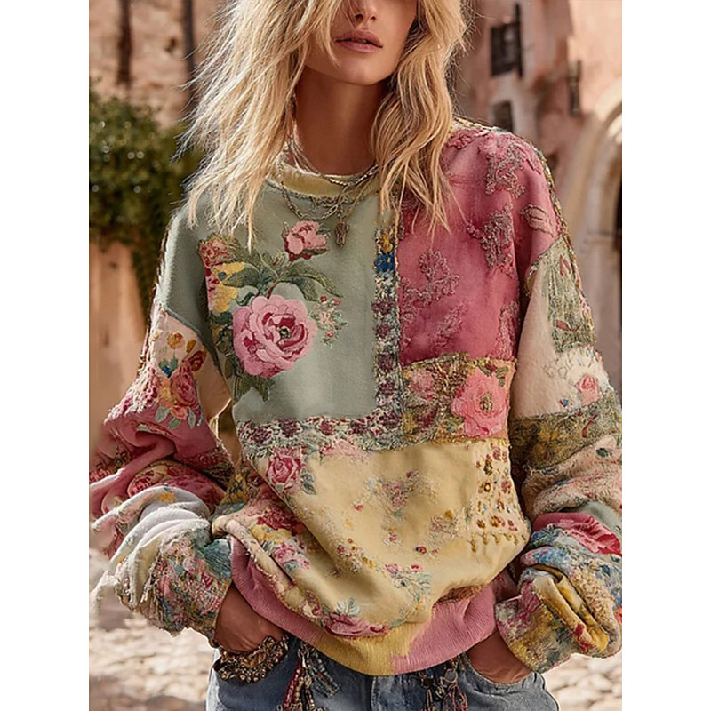 Women's 3D Print Vintage Boho Hoodie Patchwork Hoodie Sweatshirt Floral Pullover Sweatshirt Warm Active Vintage Street Dailywear Casual Light Pink Yellow Light Green Pink Red Spring Fall Winter