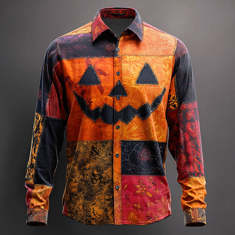 Halloween Men's Color Block Pumpkin Patchwork Shirt Button Up Shirt Long Sleeve Dark Gothic Style Holiday Streetwear Summer Spring Turndown 3D Print Collared Shirts Yellow Blue Orange Green