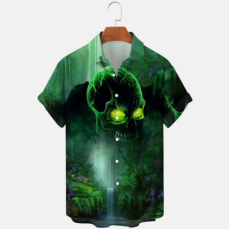 Halloween Men's Skull Halloween Costumes Shirt Summer Shirt Button Up Shirt Short Sleeve Dark Gothic Style Holiday Summer Spring Turndown 3D Print Collared Shirts Front One Pocket Green