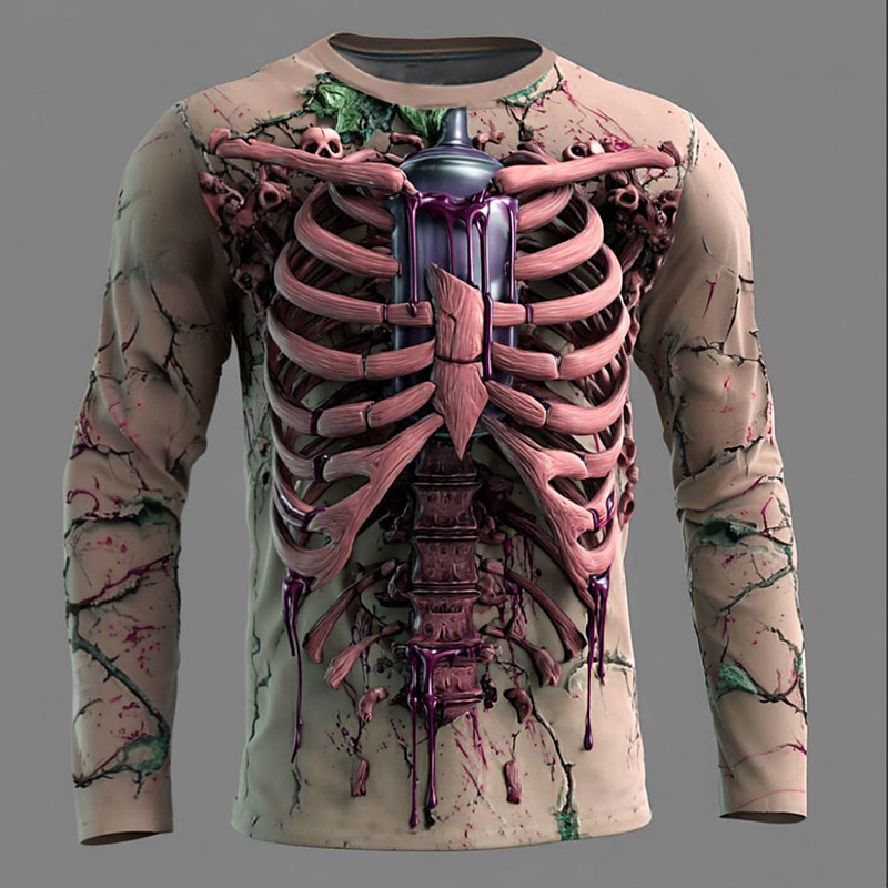 Halloween Men's 3D Skeleton T Shirt Long Sleeve T shirt 3D Print Crew Neck Shirt Fashion Exaggerated Street Casual Daily Red Blue Green Summer Spring Fall Clothing Apparel S M L XL XXL XXXL