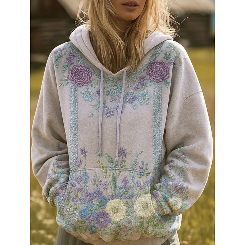 Women's 3D Print Vintage Boho Hoodie Patchwork Hoodie Sweatshirt Floral Pullover Sweatshirt Casual Long Sleeve Hooded Street Dailywear Front Pocket Grass Light Pink Purple Green Spring Fall Winter