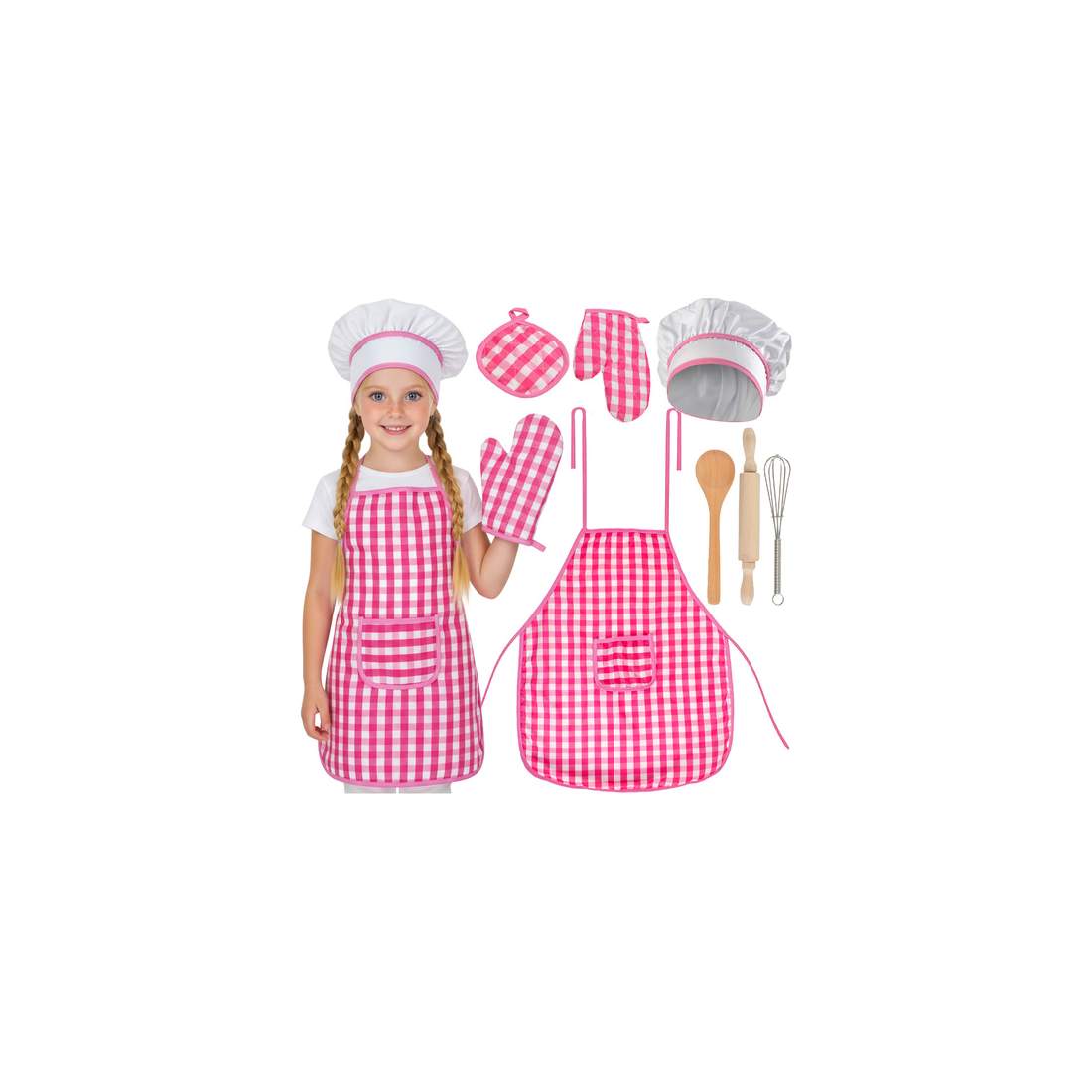 Lasten kokkisetti – esiliina, pipo, hanska ja ruoanlaittovälineet