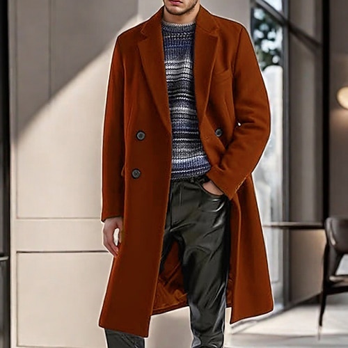 Per uomo Cappotto Trench Trench lungo Vacanza Quotidiano Autunno Inverno Poliestere Antivento Caldo Capispalla Abbigliamento Moda Classico Semplice Tasca Bavero Doppiopetto