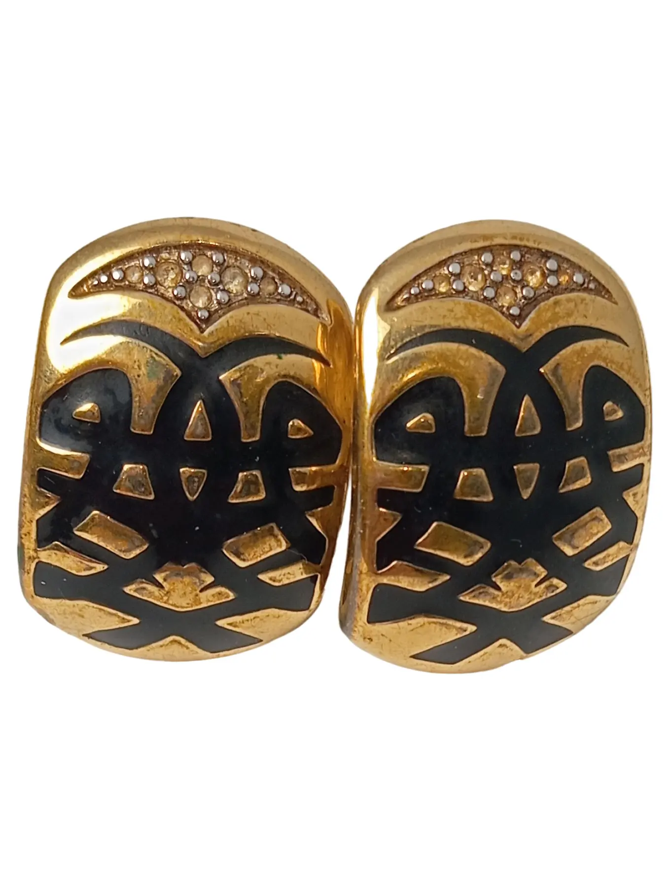 PIERRE LANG Ohrclips Retro Gold Schwarz Edelstahl