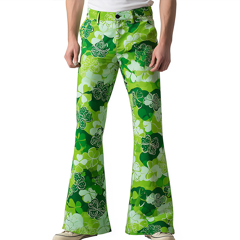 St. Patrick's Day Men's Paisley Four Leaf Clover Shamrock Trousers Disco Pants 60s 70s Bell Bottoms Mid Waist Vintage Retro Holiday Side Pockets Flared Leg Pants Trousers Spring Fall 3D Print Dark