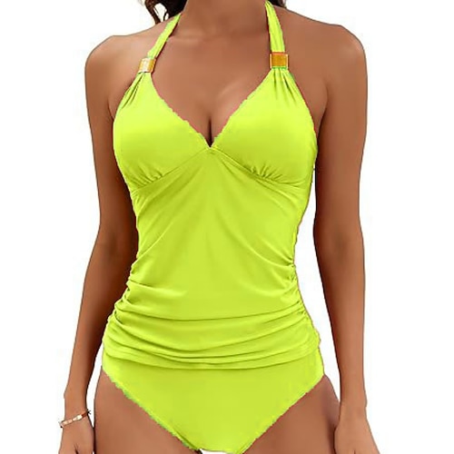 Costume intero da donna snellente arricciato sexy monokini con ritagli controllo della pancia vita alta slim schiena scoperta abbigliamento da spiaggia per vacanze colore solido collo all'americana