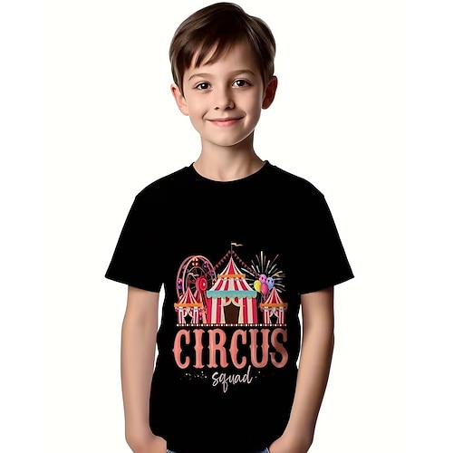 Baumwolle Karnival Kinder Jungen Schwarz Grafik Burg T-Shirt Bluse Rundhalsausschnitt Kurze Ärmel Outdoor Alltagskleidung Mode Streetwear Designer Drucken Sommer