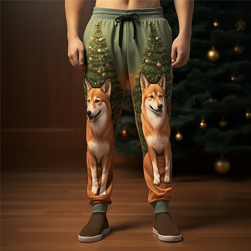 gatto cane albero pantaloni casual con stampa 3d da uomo pantaloni della tuta pantaloni da jogging strada all'aperto casual quotidiano poliestere giallo verde s m l pantaloni elastici a vita media