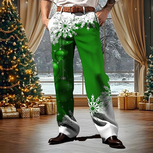 Natale Per uomo Fiocco di neve Pantaloni da tuta in pile Vita elastica con coulisse Casual All'aperto Casa Abbigliamento da sera Tasca Termico Inverno Stampa 3D Nero Rosso Blu