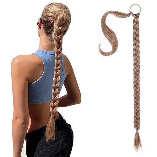 lunga coda di cavallo intrecciata con elastico per capelli dritto avvolgere le estensioni dei capelli coda di cavallo naturale morbido pezzo di capelli sintetici per le donne