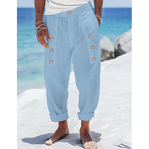 Per uomo Pantaloni di Lino Pantaloni Pantaloni Estivi Pantaloni da Spiaggia Tasca Frontale Gamba Dritta Semplice Comodità Traspirante Lunghezza intera Casuale Quotidiano Ferie Vacanza Moda Bianco Blu