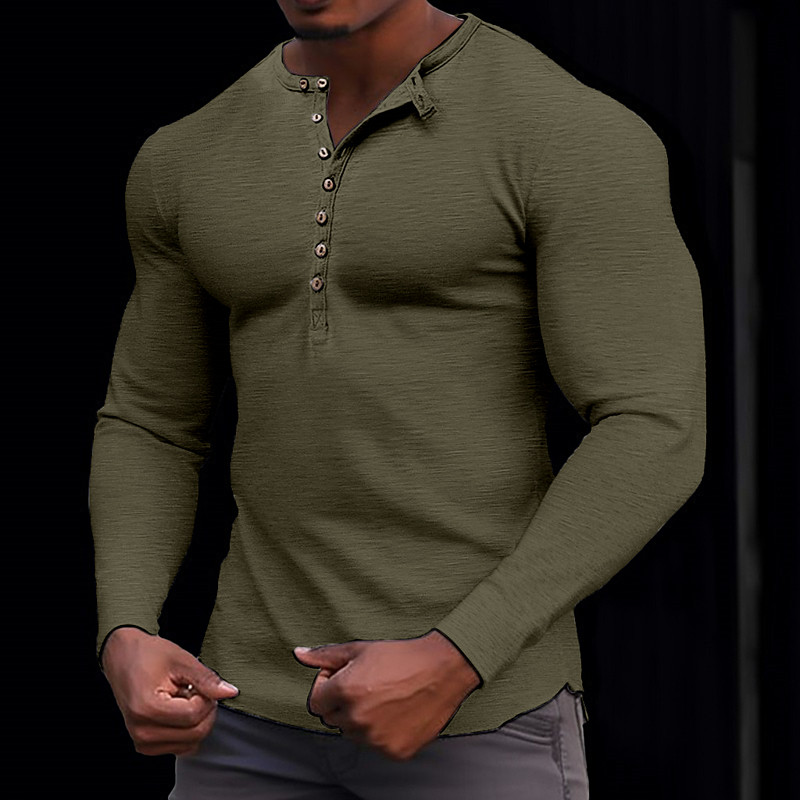 100% Cotton Men's Henley Shirt Tee Top Long Sleeve Shirt Long Sleeve Solid Color Fashion Daily Buttons Henley Outdoor Casual Summer Dark Brown Army Green Dark Grey Henley T-Shirt