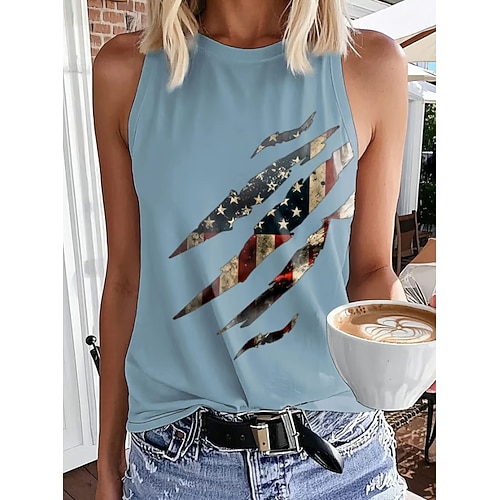 Giorno dell'Indipendenza Americana Per donna Maglietta Grafico Bandiera Vintage Tropicale Elegante Senza Maniche Girocollo Top Regolari Quotidiano Blu Nero Bianco Azzurro cielo Verde Estate Primavera