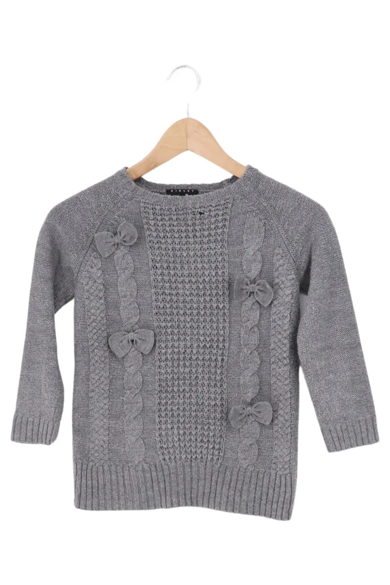SISLEY Kinder Pullover Gr. S Grau Blumenapplikationen Acryl