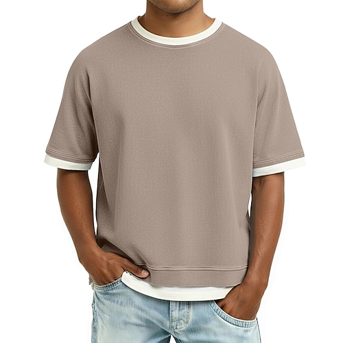 Per uomo Maglietta Camicia 100% cotone lavaggio acido Manica Corta Girocollo Primavera Autunno Autunno Inverno Semplice Vintage Streetwear Casual Blocco di colore Finto due pezzi Lavato Casuale