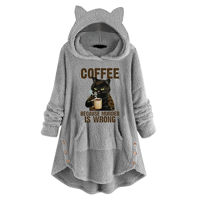 Women's Pullover Hoodie Sweatshirt Cat Casual Long Sleeve Hooded Long Tops Street Dailywear Casual Pink Wine Gray Fall Winter