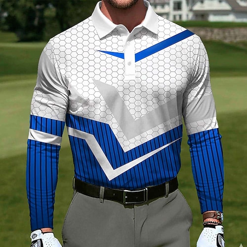 Per uomo Geometrico Golf Polo Sportivi Manica Lunga Magliette polo Bavero Casual All'aperto Athleisure Abbigliamento quotidiano Stampa 3D Bottoni Primavera Autunno Blu Giallo Rosso
