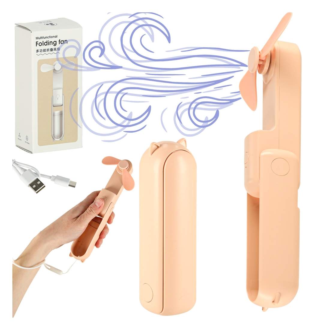 Mini håndventilator foldbar USB pink