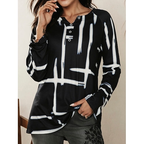 Per donna Maglietta Plaid Essenziale Manica Lunga Manica a Volant Scollo a V Top lunghi Quotidiano Sportivo Bottoni Nero Bianco Rosso Autunno Inverno