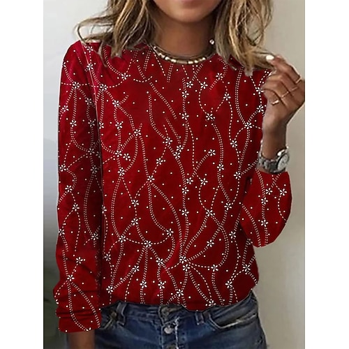 Per donna Maglietta Floreale Grafico Astratto Moda Casual Manica Lunga Girocollo Top Regolari Quotidiano Weekend Stampato Blu Nero Rosso Verde Estate Primavera Autunno