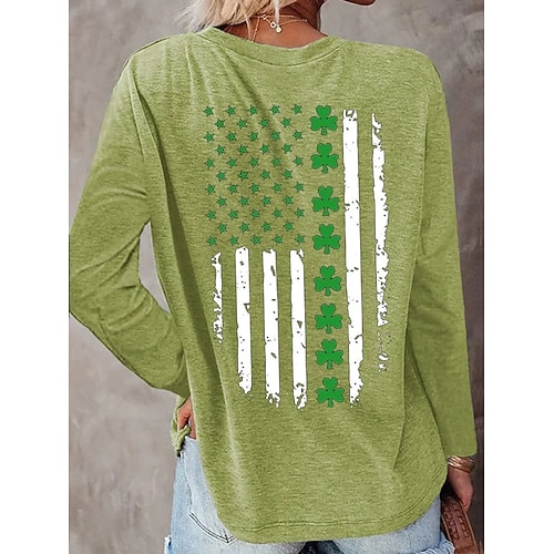 Festa di San Patrizio Per donna Maglietta Trifoglio Elegante Classico Casual Manica Lunga Girocollo Top Regolari Quotidiano Stampato Nero Verde Grigio Primavera Autunno