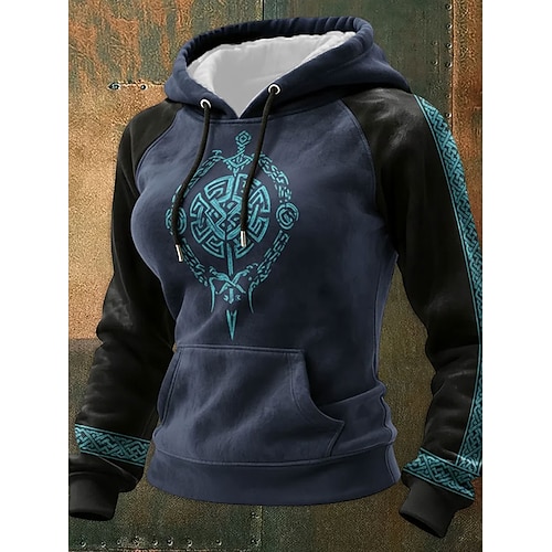 Per donna Felpa con cappuccio Grafico Geometrico Casual Manica Lunga Con Cappuccio Top Regolari Casuale Abbigliamento Quotidiano Sportivo Nero Kaki Beige Primavera Autunno