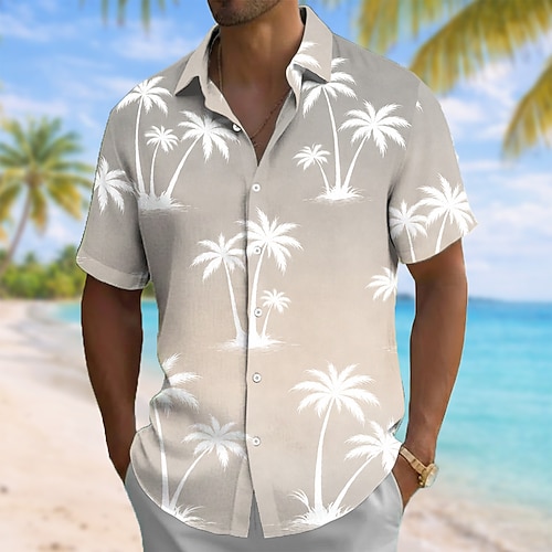 Per uomo Albero di Cocco Natura e paesaggi Piante Tropicali Camicia hawaiana estiva Camicia con Bottoni Camicia Aloha Manica Corta Hawaiano Casuale Vacanza Estate Primavera Collo ripiegato Stampa 3D