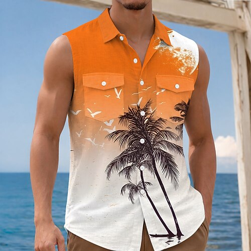 Per uomo Albero di Cocco Colore sfumato Piante Tropicali Camicia Camicia hawaiana estiva Camicia Aloha Senza Maniche Resort Vacanza al Mare Estate Primavera Collo ripiegato Stampa 3D Due tasche