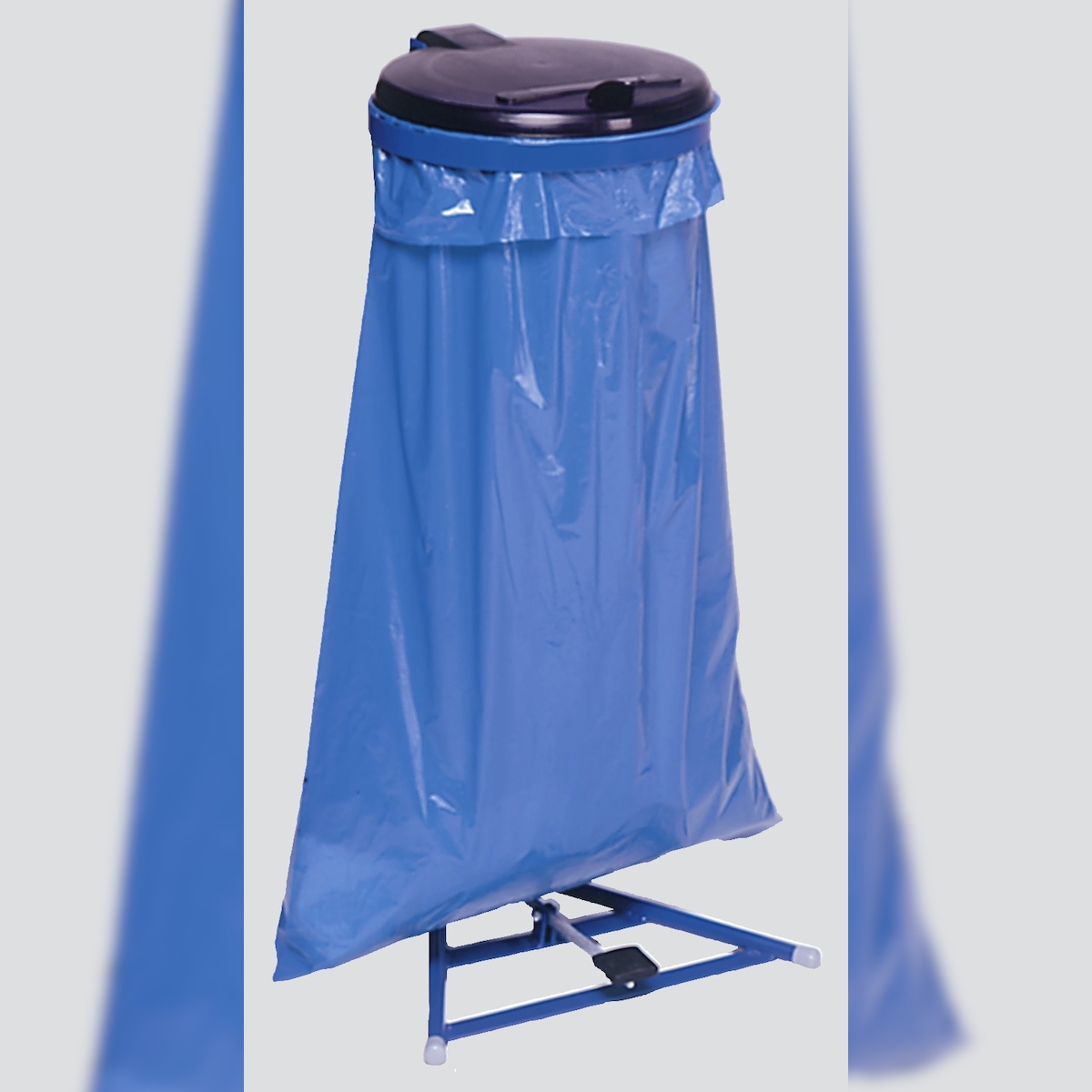 PROREGAL Robuster Müllsackständer mit Fußpedal | 120 Liter, HxBxT 100x49x49cm | Stahl | Blau-Schwarz | Mülleimer Abfalleimer Müllkorb