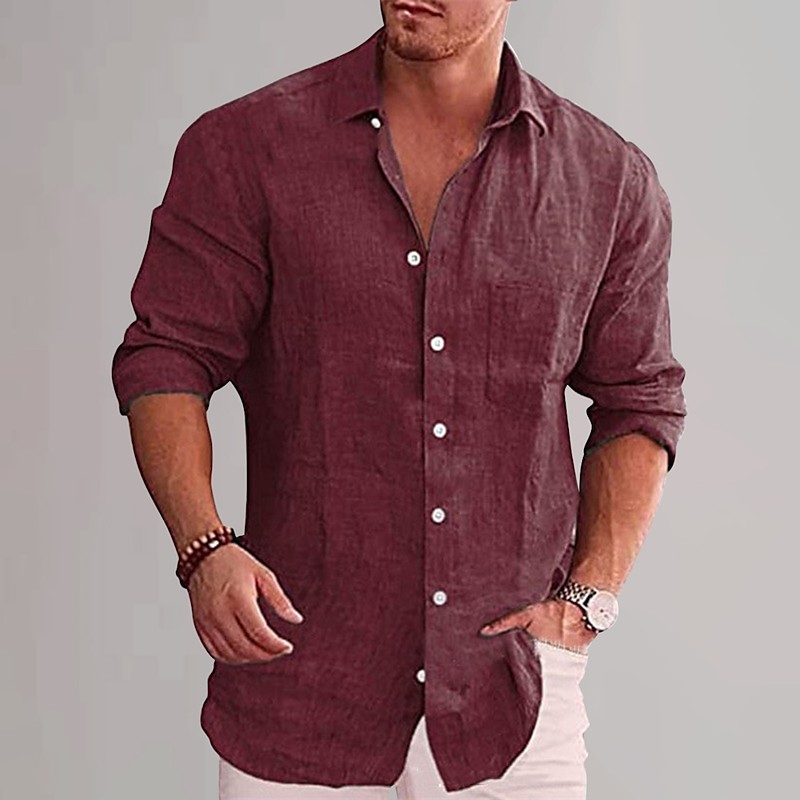 Men's Cotton Linen Shirt Plain Vacation Black White Wine Sky Blue Long Sleeve Lapel Clothing Apparel