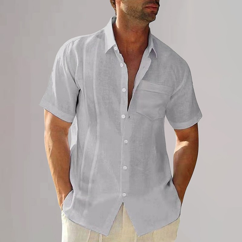 Men's Cotton Linen Shirt Plain Vacation Black White Dark Navy Blue Short Sleeve Turndown Summer Clothing Apparel