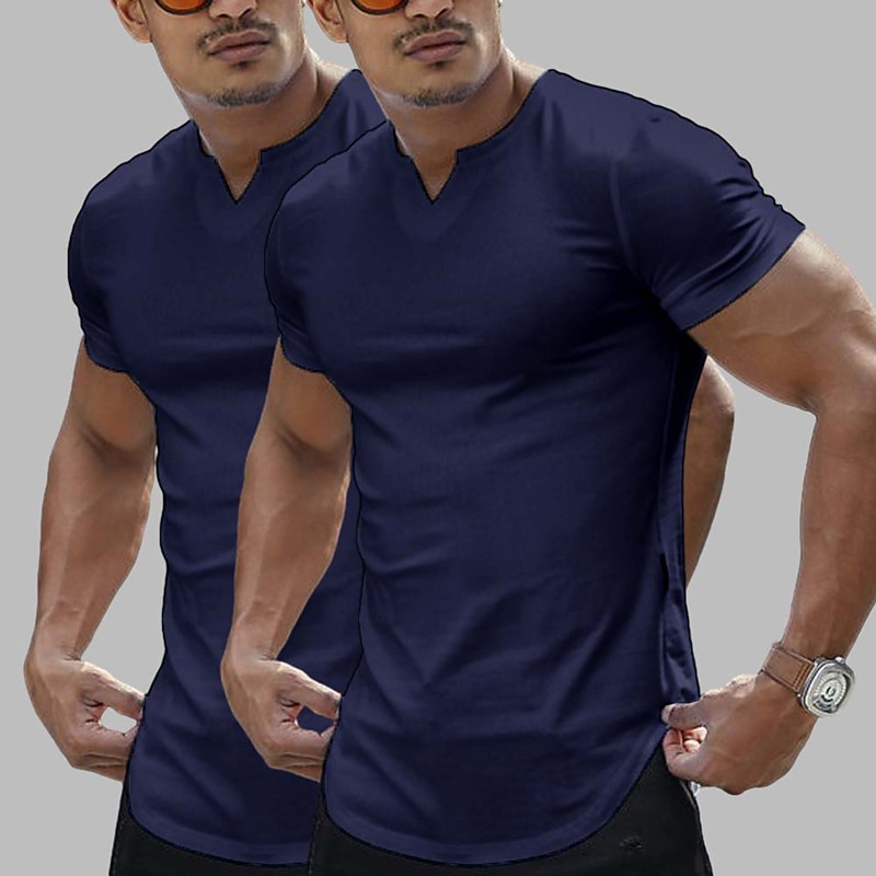 2 Pieces Men's T Shirt Casual Style Short Sleeve V Neck Summer All Seasons Plain Fashion Classic Casual 2 Pack Plain Street Casual Sports White Top Tee for Men