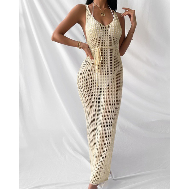 Women's Swimwear Cover Up Dress Swimsuit Cut Out Vacation Beach Wear Plain V Neck Sleeveless Bathing Suits
