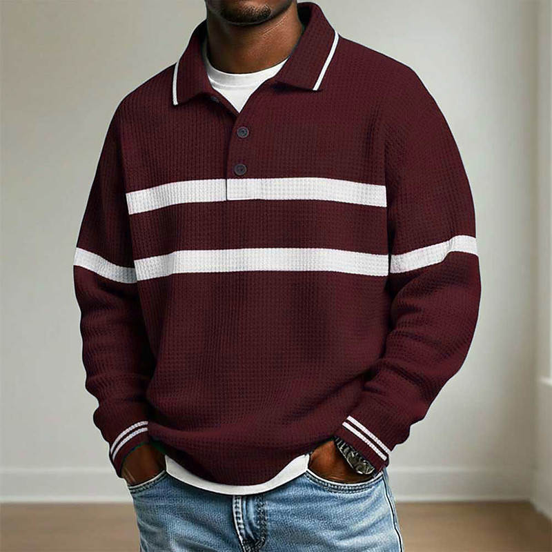 Men's Horizontal Stripes Waffle Polo Shirts Rugby Polo Rugby Polo Shirts Long Sleeve Polo Shirts Lapel Sportswear Casual School Athleisure Daily Wear 3D Print Spring Fall Winter Blue Black Red