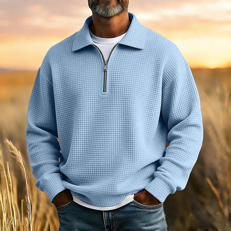 Men's Waffle Polo Shirts Textured Casual Quarter Zip Long Sleeve Fashion Modern Solid Color Textured Zipper Fall Spring Fall All Seasons Regular Fit Black Light Green Purple Light Blue Waffle Polo