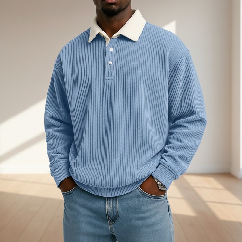 Men's Polo Corduroy Shirt Casual Sports Lapel Long Sleeve Fashion Basic Color Block Color Block Buttons Fall Spring Fall Fall Winter Regular Fit Black Wine Dark Blue Gray Light Blue Polo