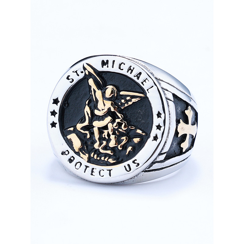 St. Michael Protect Us Ring for Men – Stainless Steel Religious Signet Ring, Vintage Catholic Jewelry for Faith, Protection and Everyday Wear
