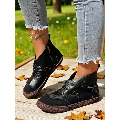 Damenstiefeletten aus Vintage-Kunstleder in Kaffeebraun mit seitlichem Reißverschluss – bequeme Stiefeletten für die Freizeit, Spaziergänge im Freien und Alltagsoutfits