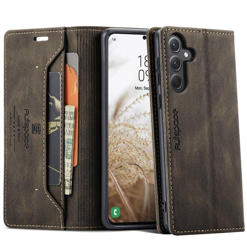 AUTSPACE Wallet Fodral för Samsung Galaxy A35 5G - KonstLäder - Kaffe