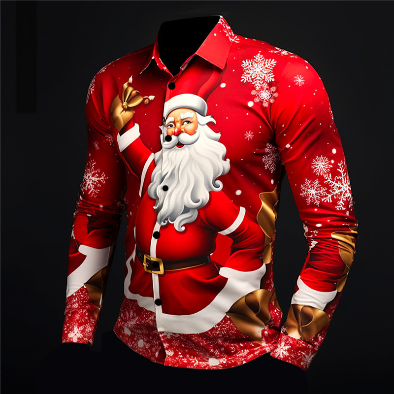 Christmas Men's Santa Claus Printed Shirts Santa Claus Tree Casual Daily Wear Going out Fall Winter Turndown Long Sleeve Dark Red, Red, Burgundy S, M, L 4-Way Stretch Fabric Shirt