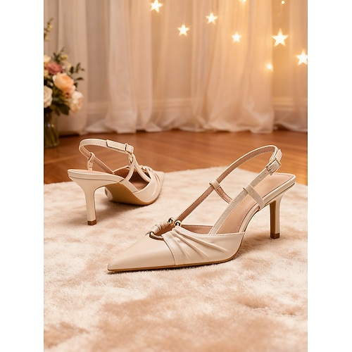 scarpe da sposa con tacco a spillo color avorio da donna, eleganti scarpe da sposa con fiocco per spose di città