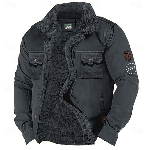 Per uomo Grafico 1776 Giacca in Pile Giacca Cargo Giacca Sherpa Calore Termico Vintage Casual All'aperto Casa Tasche Multiple Giacche di cotone Cappotti invernali Autunno Inverno Collo rovesciato in
