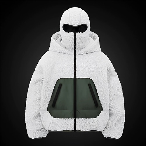 Per uomo Felpa con cappuccio Felpa con cappuccio a zip intera Felpa con cappuccio e zip Felpa con cappuccio in pile Sherpa Nero Bianco Grigio scuro Con Cappuccio Blocco di colori Con zip Patchwork