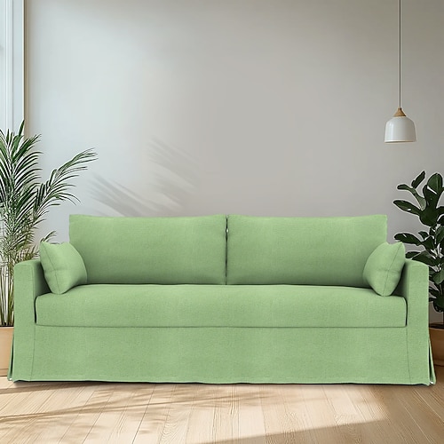 Linen Sofa Cushion Cover, Solid Color Modern Minimalist Slipcover, All-Season Non-Slip Full Coverage Sofa Protector, Pet-Friendly
