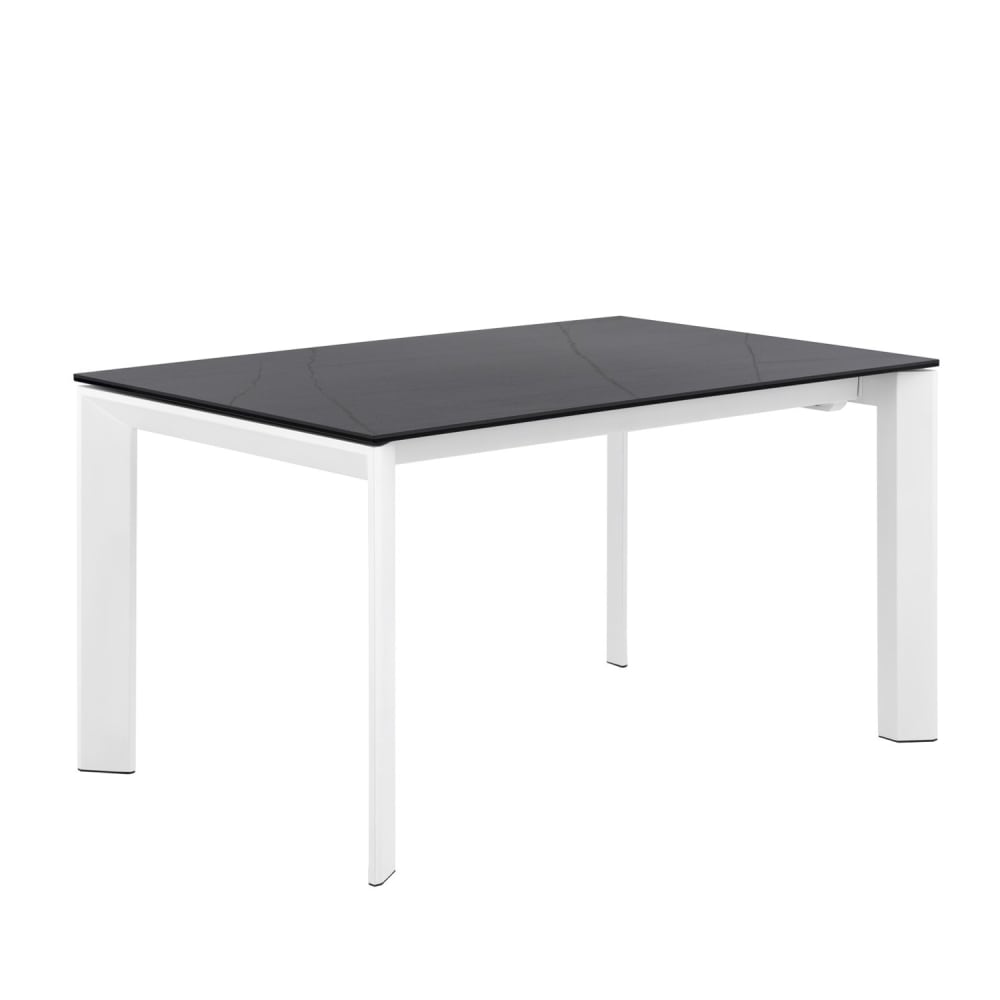 Tavolo allungabile 160 con piano in porcellanico nero e gambe bianche