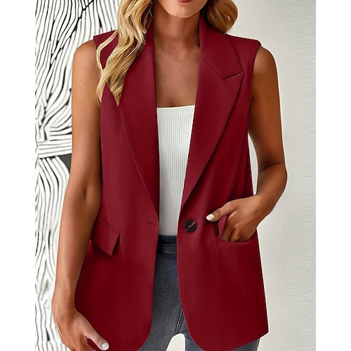 Per donna Gilet Confortevole Tasca Moda All'aperto Semplice Uscire Weekend Monopetto Regolare Collo ripiegato Vestibilità regolare Senza Maniche Capispalla Nero Bianco Vino Autunno Inverno